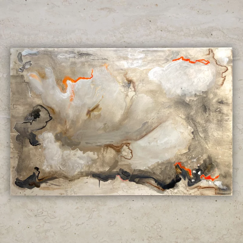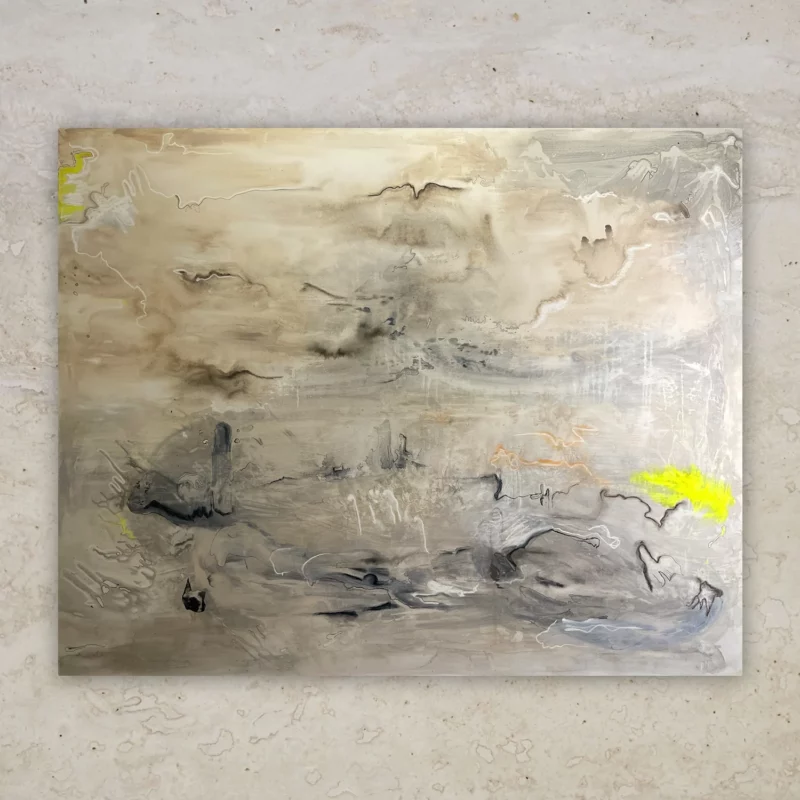This is about longing. Not for things, but for states — when the body and mind lose weight. The phrase “GET ME HIGH” is not about escape, but about transcendence. I let the paint run like my energy — fast, blurred, unrestrained. Layers upon layers of feeling with no logic, but with force. The intensity of pink almost consumed me — and that’s exactly what I wanted. To be lifted, and then fall back onto the canvas.